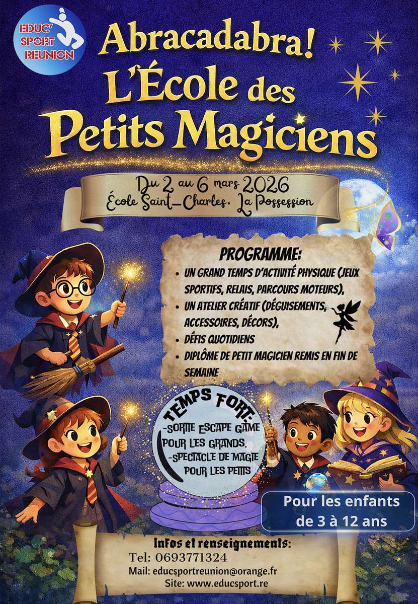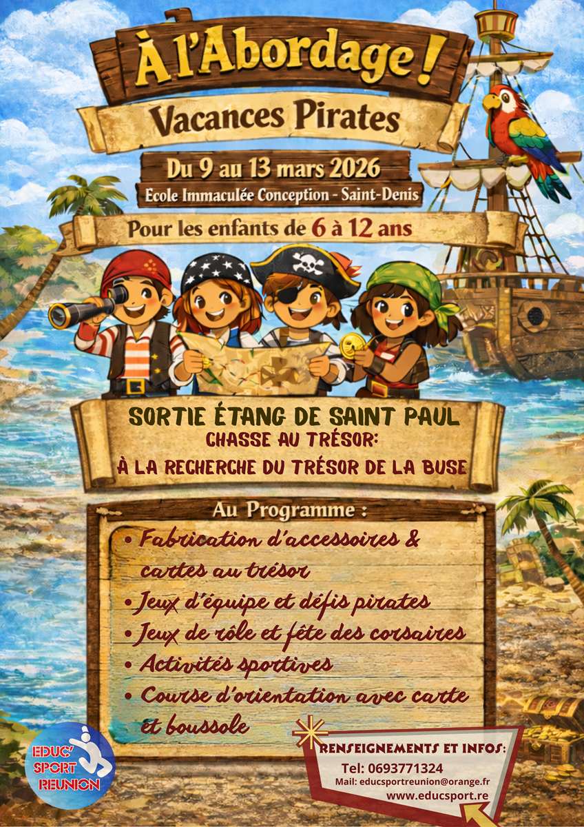 Educ Sport Réunion propose des semaines à thème pour les enfants de 3 à 12 ans : sport, ateliers créatifs, découvertes culturelles et sorties ludiques, le tout encadré par une équipe qualifiée.